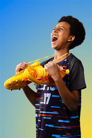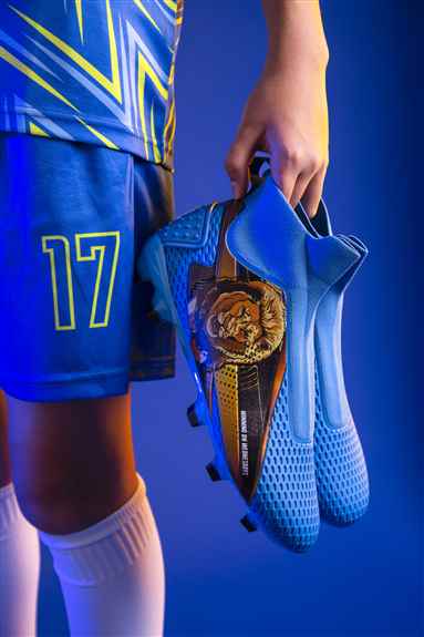 The PTJ soccer/football cleat is a perfect blend of elegance and performance. Its sleek black exterior exudes sophistication, while the gold accents to give you that extra flair on the pitch. Designed with premium materials, it offers exceptional comfort, durability, and a snug fit for enhanced ball control. The lightweight construction and strategically placed studs ensure maximum traction and agility on the field. Ideal for player who want to stand out and elevate their game, the PTJ cleats combines aesthetics and functionality, making it a must-have for competitive and recreational athletes alike.Product Images: